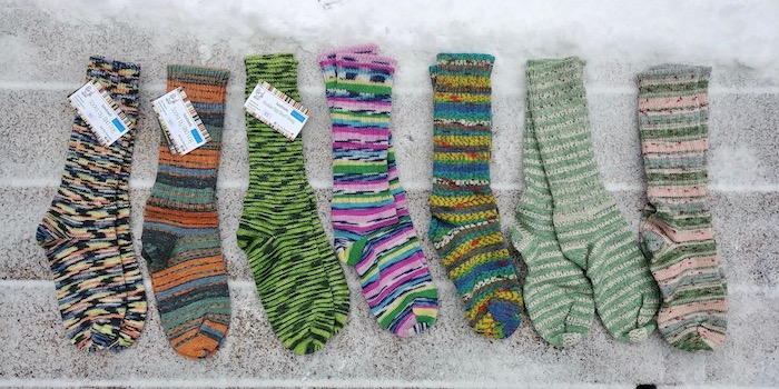 Ingrid makes wonderful handmade virgin wool socks from high quality yarns. Machine washable/dryable. Soft, warm and cozy yet durable. Comfortable, non-binding fit. Sizes: women’s 5 to men’s 14 and everything in between