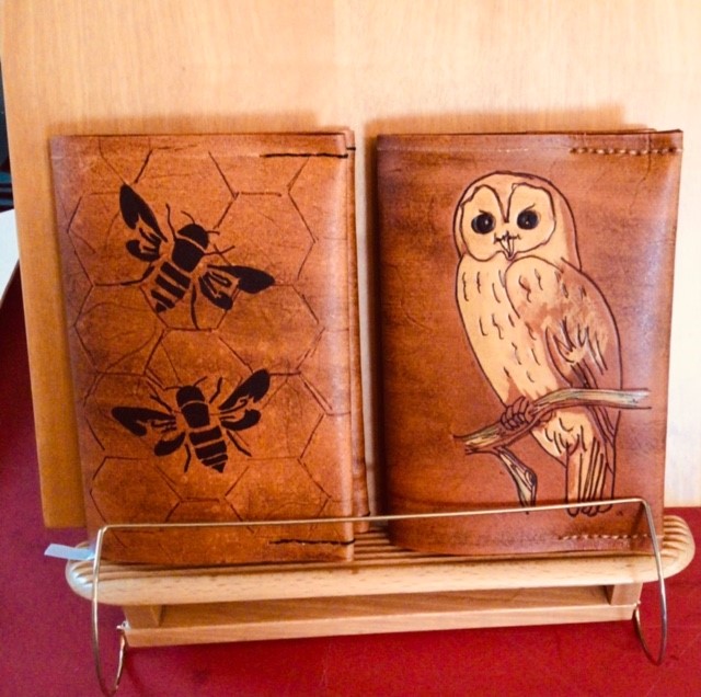 Shawn is a leather worker. She creates leather goods by hand-dying, hand-sewing and hand drawing on genuine leather. Shawn makes belts, purses. totes, wallets, journals, guitar straps and more. She will also do custom orders. Some conditions will apply.